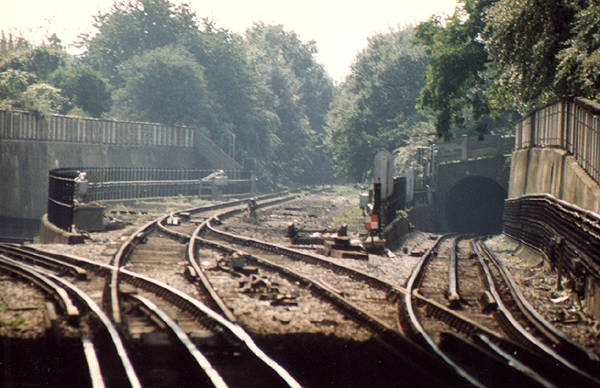 original route to Ilford (centre) and the two tunnels subsequently